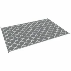 Outsunny Reversible Outdoor Rug With Carry Bag And Ground Stakes – Grey & White -844-638V01LG