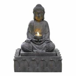 Outsunny 2 Tier Wooden Garden Water Feature – Brown – 844-097
