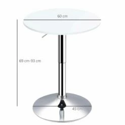 HOMCOM Height Adjustable Round Bar Table With Metal Base – White/Chrome – 835-388WT