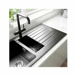 Prima+ 1 Bowl Granite Reversible Inset Sink With Drainer – Black – CPR318