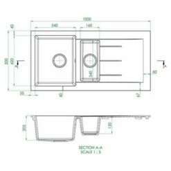 Prima+ 1.5 Bowl Granite Reversible Inset Sink With Drainer – Gun Metal – CPR324