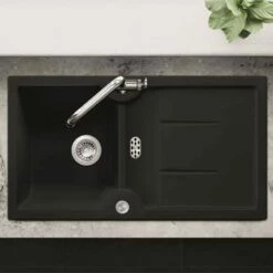 Thomas Denby Lydian Chef 1.5 Bowl Kitchen Sink & LH Drainer – Black Satin – LYD1020LBL