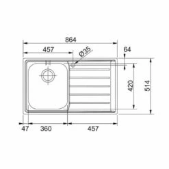 Franke Neptune 1 Bowl Sink With Right Hand Drainer NEX 211 – Stainless Steel – 127.0059.654