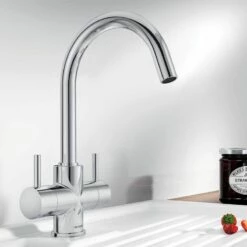 Blanco CAMIA Twin Lever High C-Shaped Spout Galvanic Kitchen Tap – Chrome – 525334