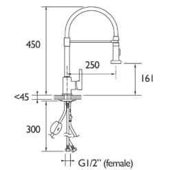 Bristan Liquorice Professional Kitchen Mixer With Pull Down Spray, Chrome – LQR PROSNK C