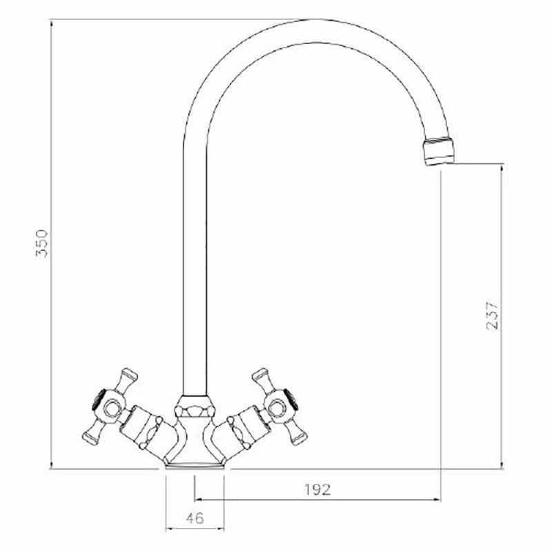 - Tap Dimensions: Overall Height – 350mm; Spout Height – 237mm; Spout Reach – 192mm; Base/Handle Width – 46mm