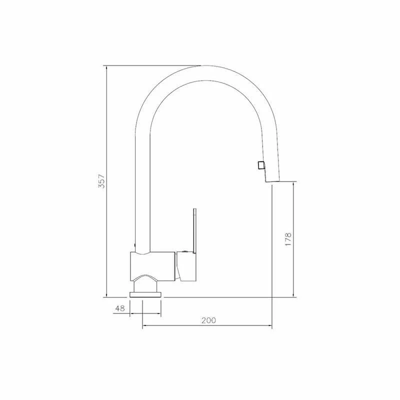 - Tap Dimensions: Overall Height – 357mm; Spout Height – 178mm; Spout Reach – 200mm; Base/Handle Width – 48mm