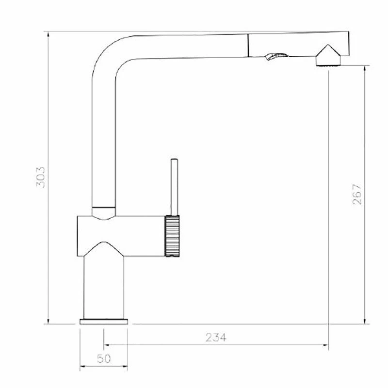 - Tap Dimensions: Overall Height – 303mm; Spout Height – 267mm; Spout Reach – 234mm; Base/Handle Width – 50mm