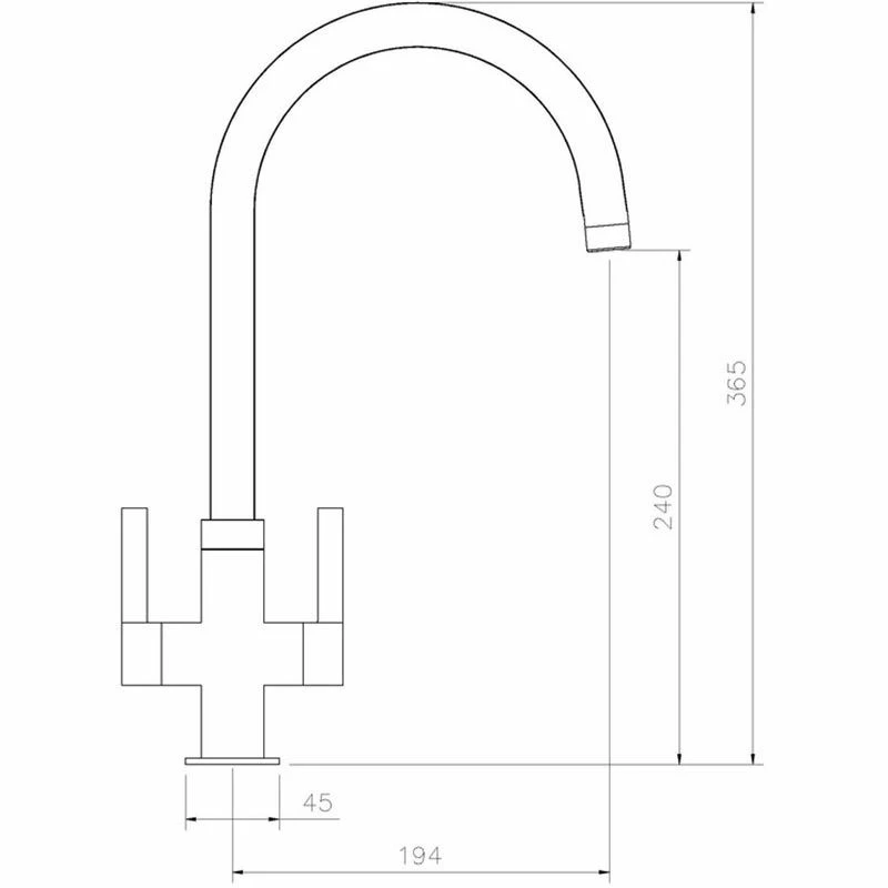 - Tap Dimensions: Overall Height – 365mm; Spout Height – 240mm; Spout Reach – 194mm; Base/Handle Width – 45mm