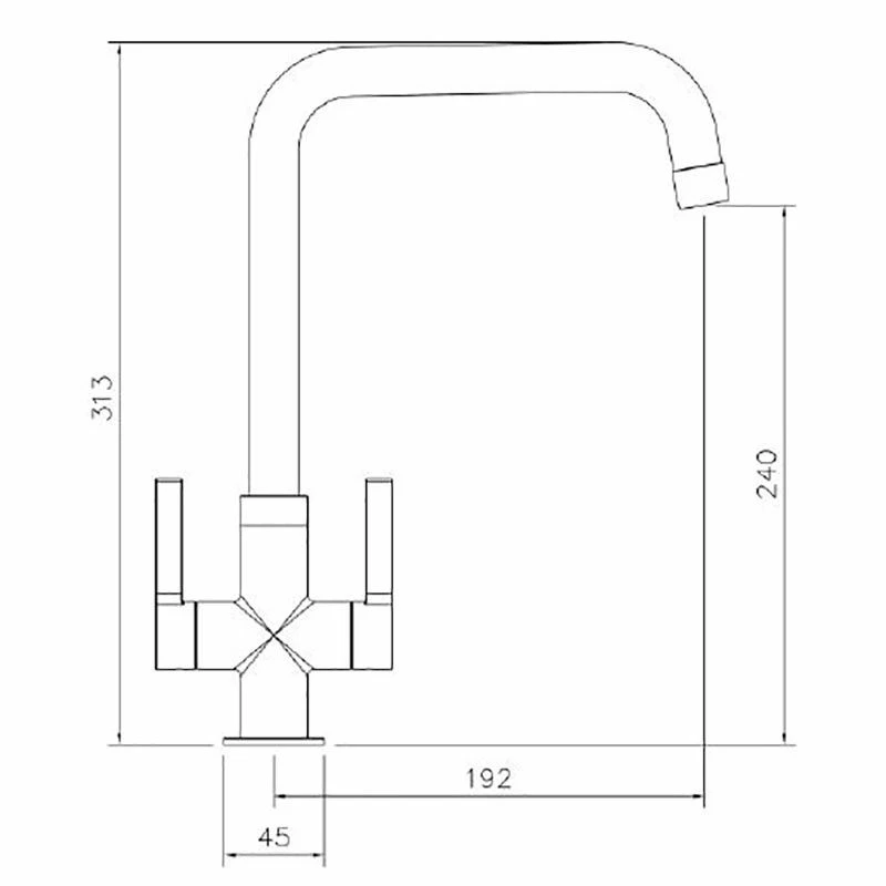 - Tap Dimensions: Overall Height – 313mm; Spout Height – 240mm; Spout Reach – 192mm; Base/Handle Width – 45mm