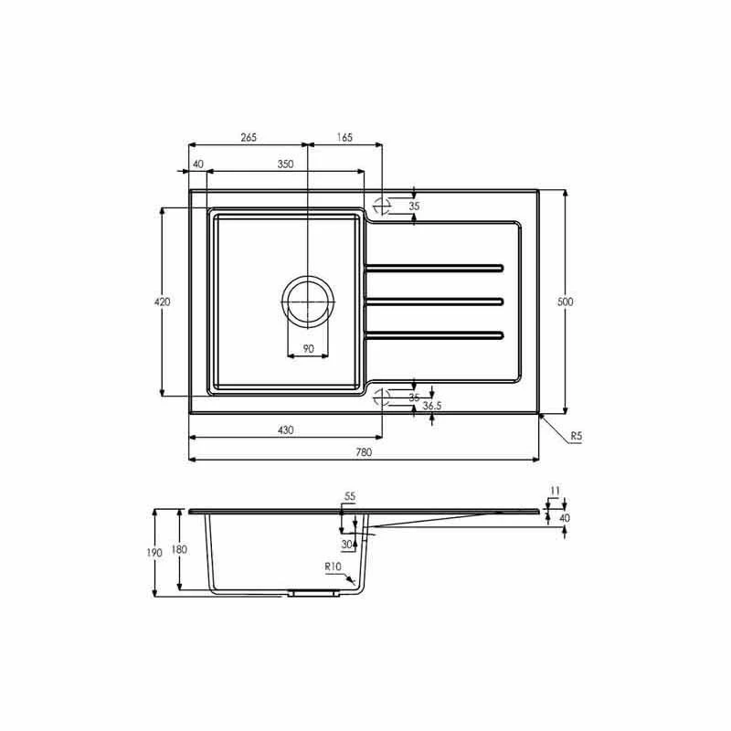 Abode Xcite Single Bowl & Drainer Granite Sink – AW3161 Details