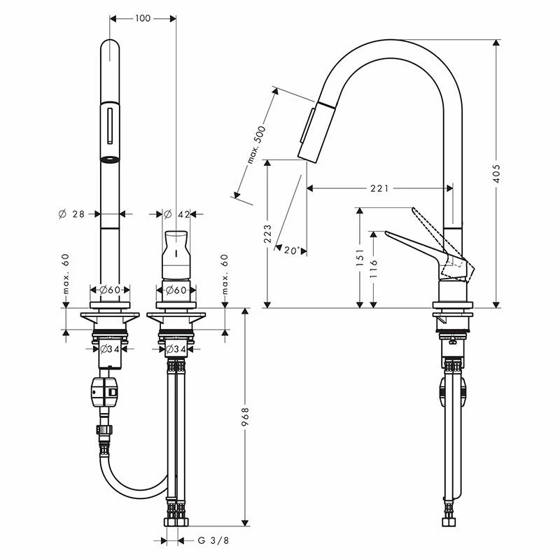 Practical, stylish and easy to install, this Axor Single Lever Kitchen Mixer is perfect to give your kitchen a traditional revamp. Designed to effortlessly coordinate with other kitchen fittings from Axor.
