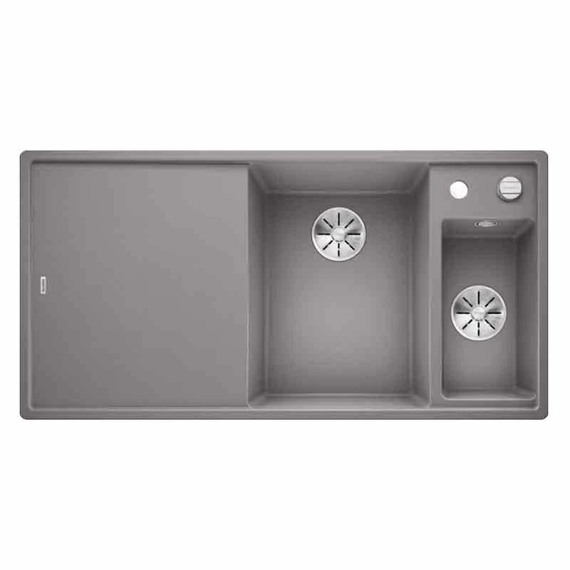 Blanco AXIA III 6 S Rh 1.5 Bowl Inset Silgranit Kitchen Sink with Remote Control InFino Drain System – Alumetallic – 523474