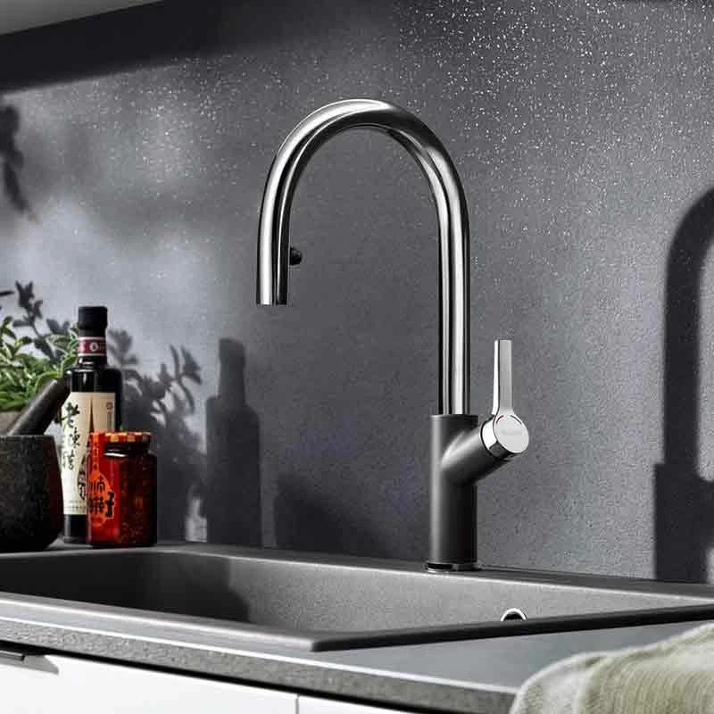 Mixer taps with a pull-out spray aren’t just the preserve of professional chefs. Enthusiastic home cooks also love their flexibility and versatility. Kitchen mixer taps with a pull-out spray offer a wider radius of action within the bowl. This makes filling up pots and other high-sided vessels like vases a breeze.