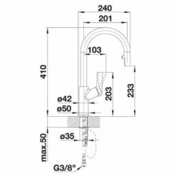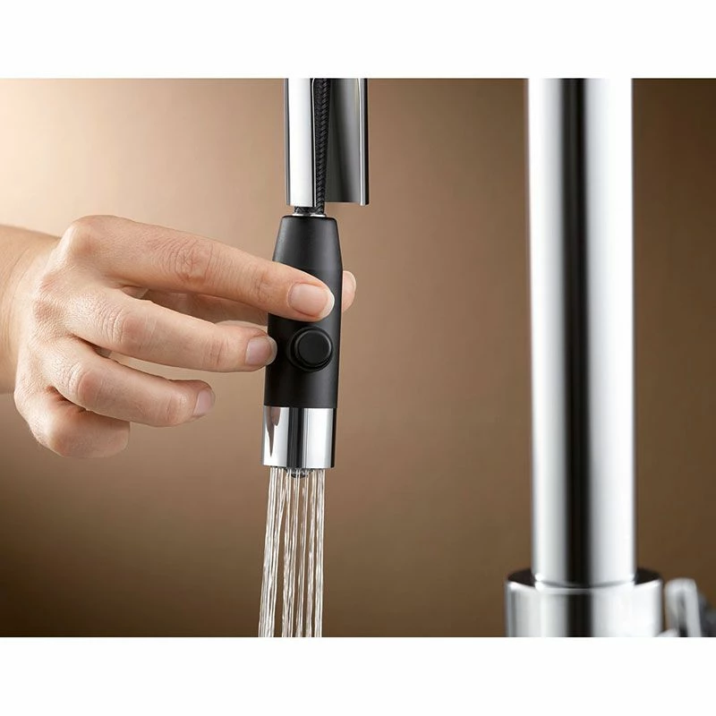 The Blanco CARENA-S Vario Pull-Out Spout Silgranit Look Dual Finish Kitchen Tap has a high arched outlet for easy filling of pots and vases. There is also a high positioned, ergonomic control lever and a covered spray hose with a change over button on the back.