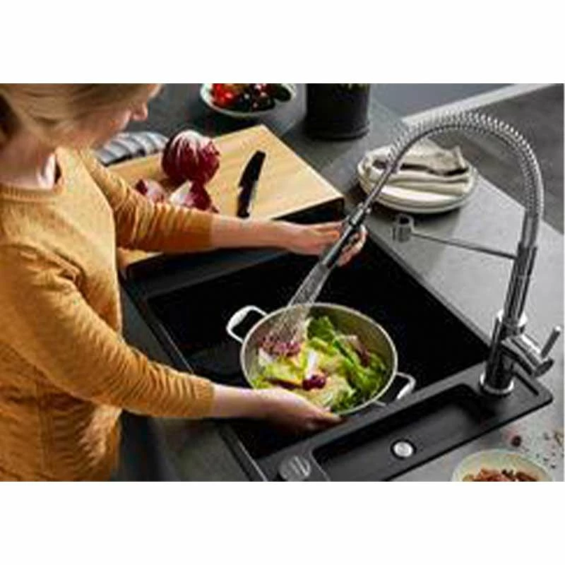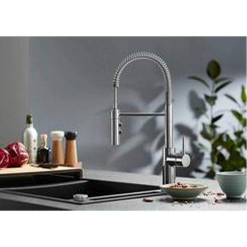 The Blanco CATRIS-S Flexible Stainless Steel Spring Hose Galvanic Kitchen Tap features a flexible stainless steel spring hose, with swivel spout and variable jet option spray. Additionally, this kitchen tap provides you with a smart and professional appearance, and offers the user amazing functionality.