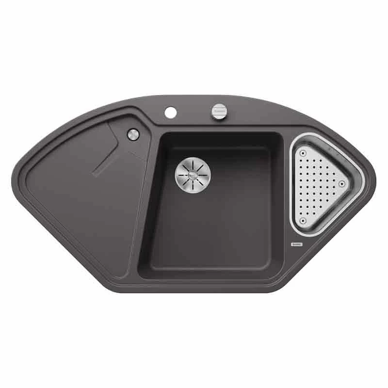 Blanco DELTA II 1.5 Bowl Inset Silgranit Corner Kitchen Sink with Remote Control InFino Drain System – Rock Grey – 523657