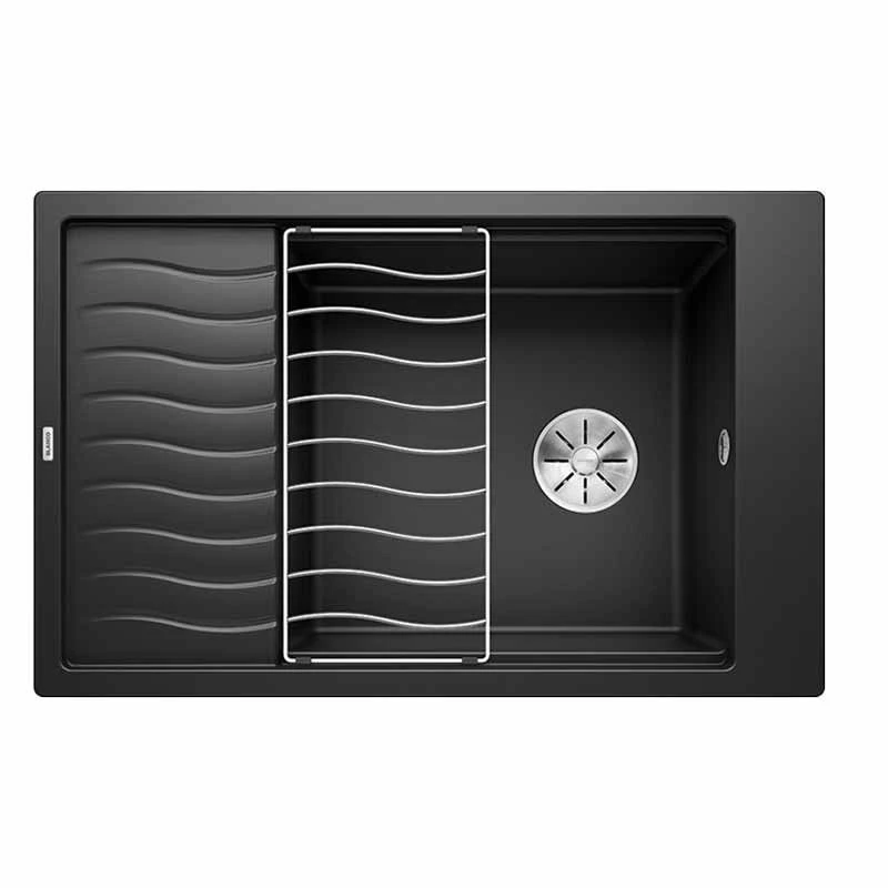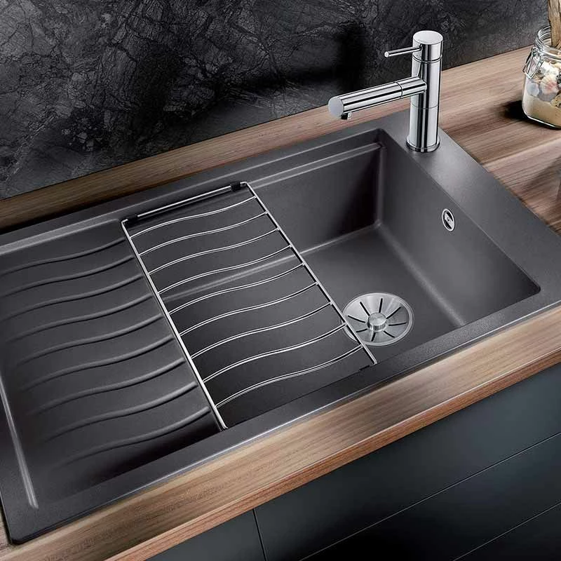 The Blanco ELON XL 6 S Reversible Silgranit Kitchen Sink consists of a compact single-bowl sink and innovative extending drainer area thanks to a moveable stainless steel wave drainer grid making it a perfect addition to smaller kitchen spaces. It is manufactured from silgranit which can easily withstand the everyday wear and tear due to being strong, long lasting and resistant to scuff marks from items such as knives, heavy pots and hot baking trays