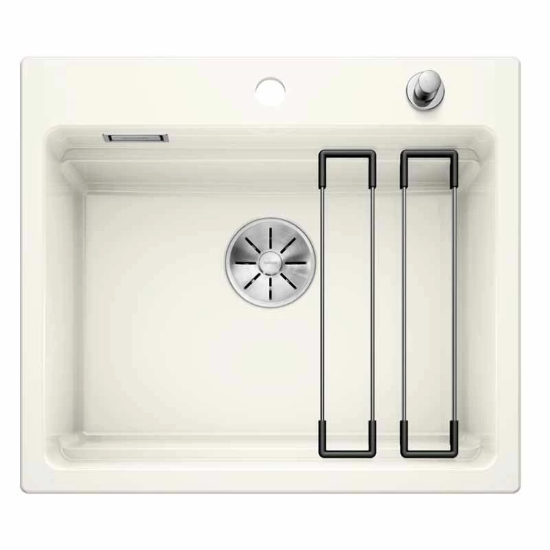 Blanco ETAGON 6 Ceramic PuraPlus 1 Bowl Inset Kitchen Sink with Drain Remote Control – Crystal White – 525156