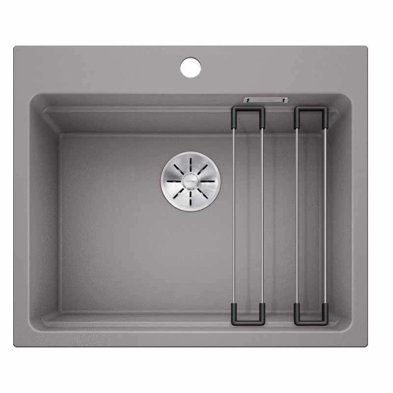 Blanco ETAGON 6 Silgranit 1 Bowl Inset Kitchen Sink with Manual InFino Waste – Alumetallic – 524541