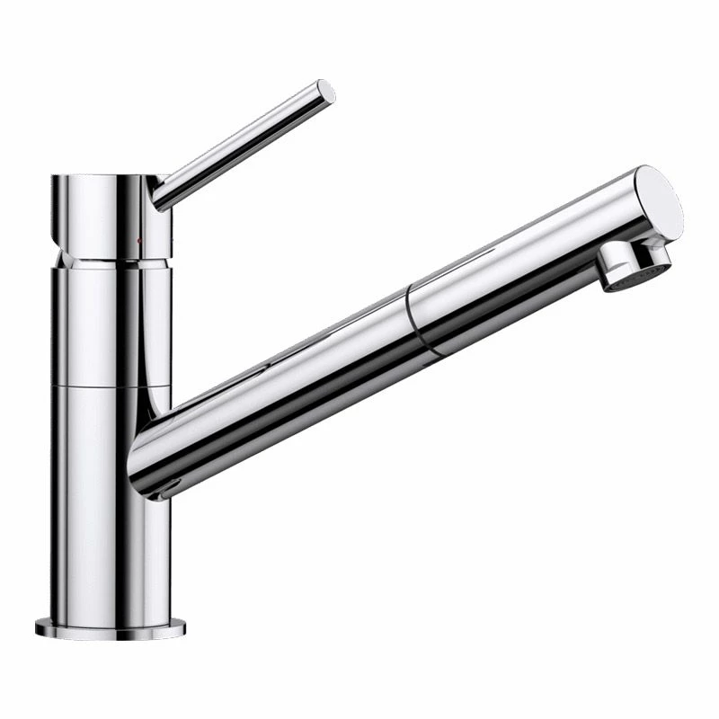 The Blanco KANO-S Single Lever Pull-Out Spray Galvanic Kitchen Tap features a pull-out spray hose for added reach and convenience, and high-quality ceramic disc cartridge for long-lasting operation. This KANO kitchen tap is especially suited for compact sinks, and blends in perfectly with modern kitchens.