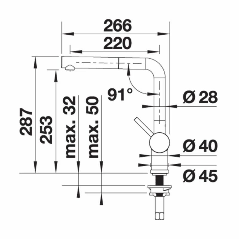 - Stabilisation plate to increase the stability of the tap when fitted in stainless steel sinks