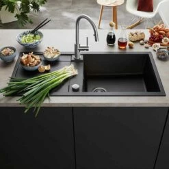 The Blanco Metra XL 6 S Reversible Siglranit Kitchen Sink has a modern, simple yet striking linear design and features a large, spacious bowl that provides plenty of space for washing up. The Blanco Kitchen Sink has an integrated drainer to provide a high degree of convenience and comes in a luxurious black finish that will blend perfectly into any style of kitchen.