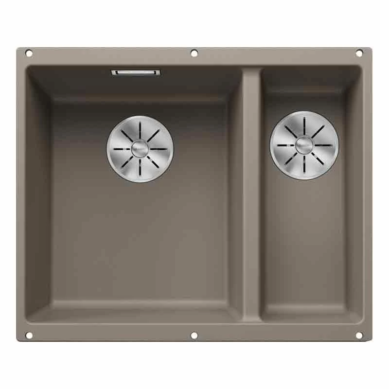 Blanco SUBLINE 340/160-U 1.5 Bowl Undermount Silgranit Kitchen Sink with Manual InFino Waste – Tartufo – 523556