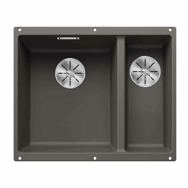 Blanco SUBLINE 340/160-U LH Silgranit 2 Bowl Undermount Kitchen Sink with Manual InFino Waste – Volcano Grey – 527345