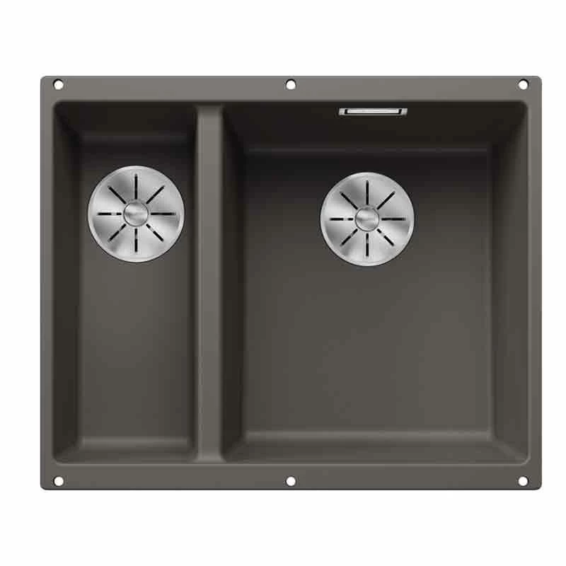 Blanco SUBLINE 340/160-U RH Silgranit 2 Bowl Undermount Kitchen Sink with Manual InFino Waste – Volcano Grey – 527346