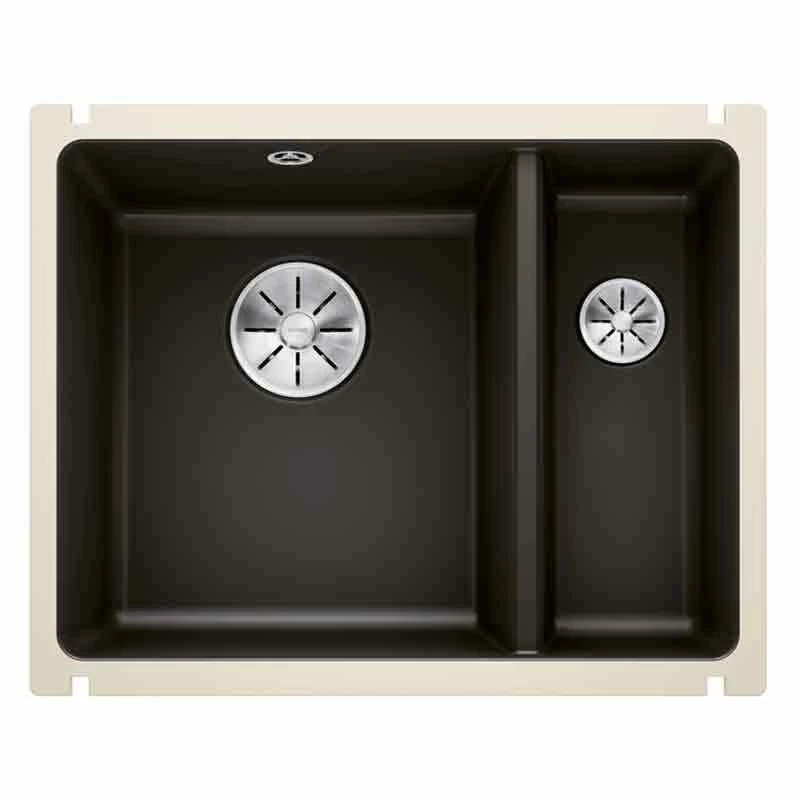 Blanco SUBLINE 350/150-U 1.5 LH Bowl Undermount Ceramic Kitchen Sink with Manual InFino Waste – Black – 523747
