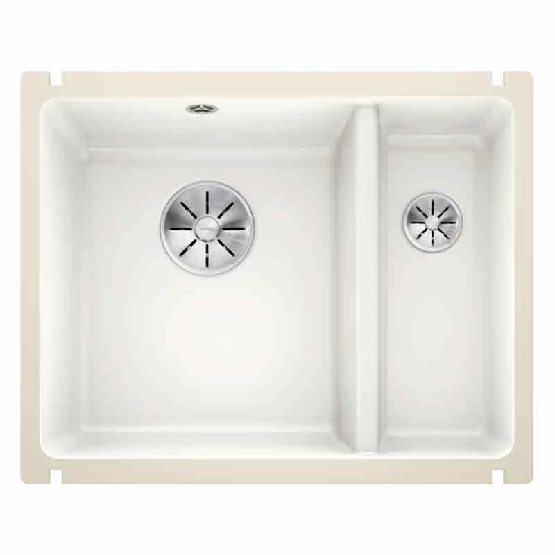 Blanco SUBLINE 350/150-U 1.5 LH Bowl Undermount Ceramic Kitchen Sink with Manual InFino Waste – Crystal White – 523741