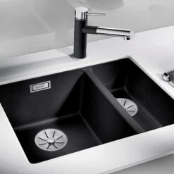 The SUBLINE Kitchen Sink features a unique 1.5 bowl design, providing versatility for various kitchen tasks. The primary large bowl is perfect for washing dishes and accommodating large cookware, while the smaller half-bowl adds convenience for food preparation and rinsing. This dual-bowl configuration makes multitasking in the kitchen a breeze. Crafted from Blanco’s proprietary Silgranit material, this sink boasts exceptional durability and resistance. Silgranit is renowned for its ability to withstand scratches, stains, and heat, ensuring the sink retains its pristine appearance for years. Cleaning is effortless, thanks to the sink’s smooth, non-porous surface. The undermount installation method creates a seamless and modern look for your kitchen. With the sink mounted beneath the countertop, there are no visible edges, allowing your kitchen’s design elements to shine. This design also simplifies countertop maintenance, as there are no raised edges to trap debris.