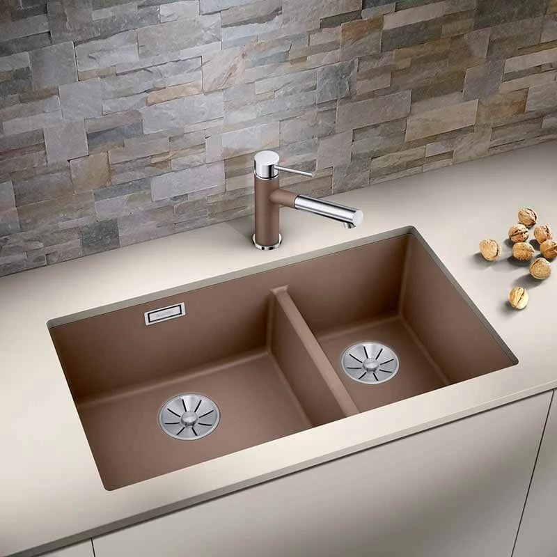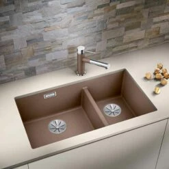 Blanco SUBLINE 430/270-U LH Silgranit 1.5 Bowl Undermount Kitchen Sink with Manual InFino Waste – Tartufo – 523158