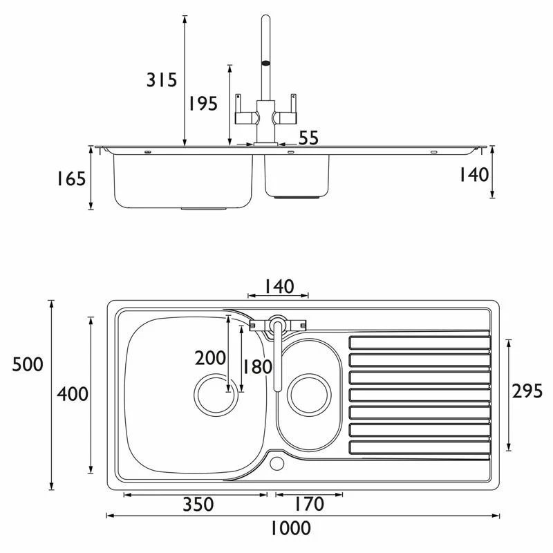 Bristan Inox Easyfit 1.5 Bowl Stainless Steel Kitchen Sink with Cashew Tap – Reversible Drainer – SK INXRD1.5 SU CSH Details