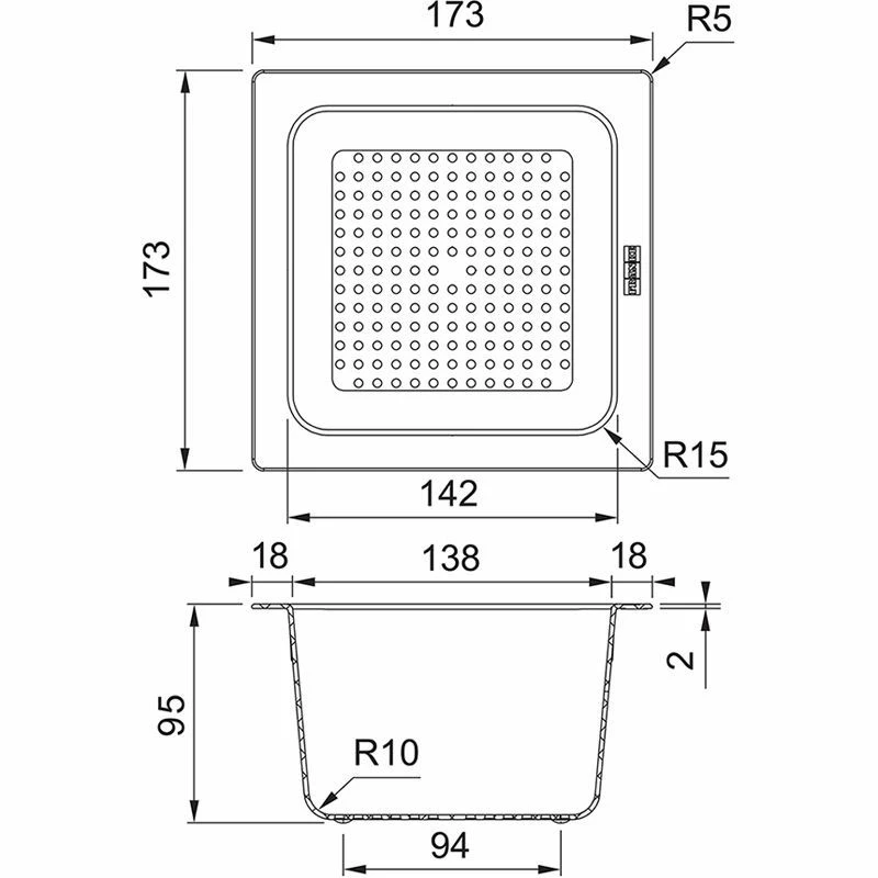 - PP Bowl Dimensions: 173 x 173 x 95mm