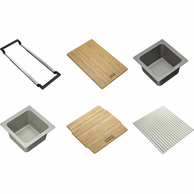 Franke’s All-In Accessory Set adds to your kitchen space as a flexible food preparation system to suit a wide variety of Franke Kitchen Sinks. The addition of the accessory kit helps with transforming your sink into a stylish workstation whether looking to work on food preparation or cleaning jobs, creating a flow within your kitchen and daily tasks. The Franke All-In Accessory Set is a well-equipped and intuitive addition that completes many needs whatever product you are looking to add to your sink.