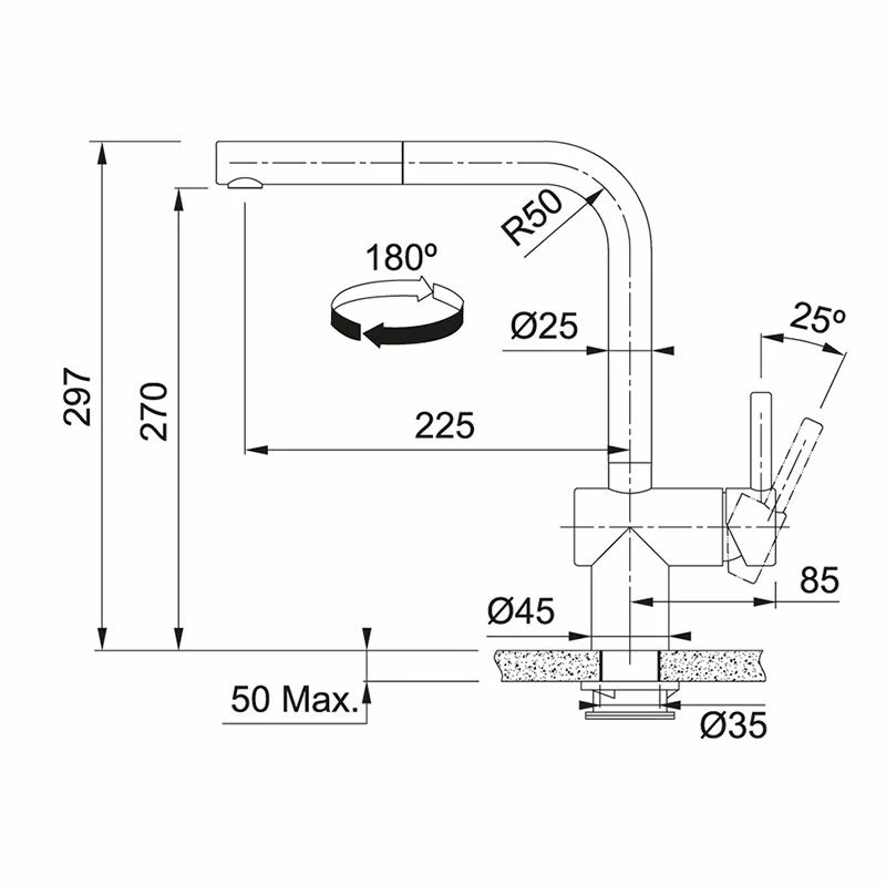 The tap can power the water flow continuously for 30 seconds and can be stopped with a wave. As a stylish feature, the Sensor Tap water flow can stop in less than a second if unintentionally started. With the addition of pull out nozzle, the sink adds the needs of your kitchen reaching any areas of your sink whether washing up or cleaning your sink. The tap’s temperature can be set upon installation through the control box under the sink, making it personal to your needs.