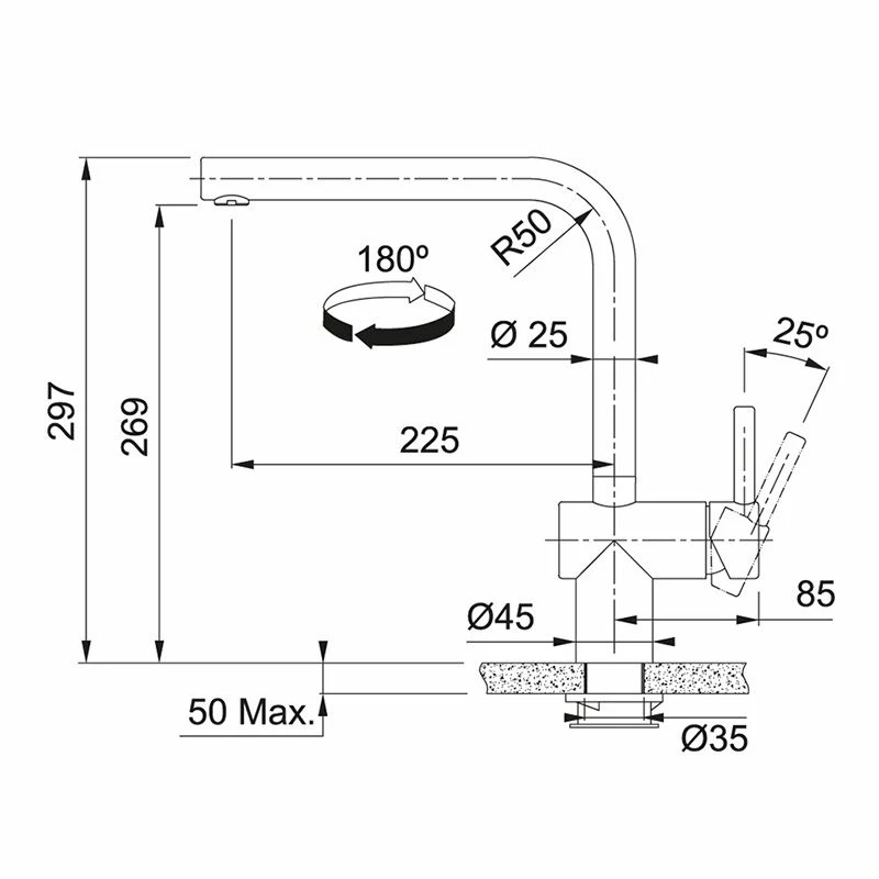 The Franke Atlas Neo Sensor kitchen tap is made of high quality stainless steel which has a hygienic, non-porous surface that is resistant to bacteria and germs. Once in use, the water will flow continuously for 30 seconds. The tap can be stopped with a wave, as well as started. The tap is fitted with hybrid function that enables manual lever for everyday use and sensor activity for hand washing. You do not need to worry if the sensor is accidentally started, and once it’s activated, the water flow will stop in less than a second.