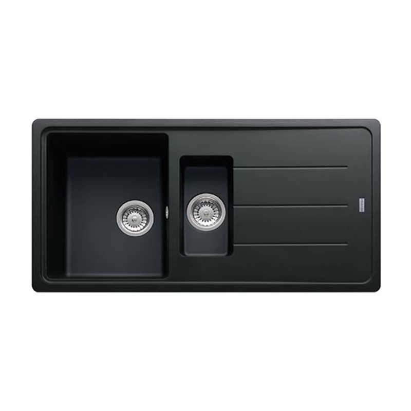 Finish your kitchen with the Franke Basis BFG 651 Reversible 1.5 Bowl Inset Kitchen Sink in Onyx Black. Manufactured from Fragranite, a combination of 80% quartz sand and 20% very hard acrylic resin which ensures durability and versatility, the sink will make a statement in any kitchen with its subtle shine and and practical benefits.