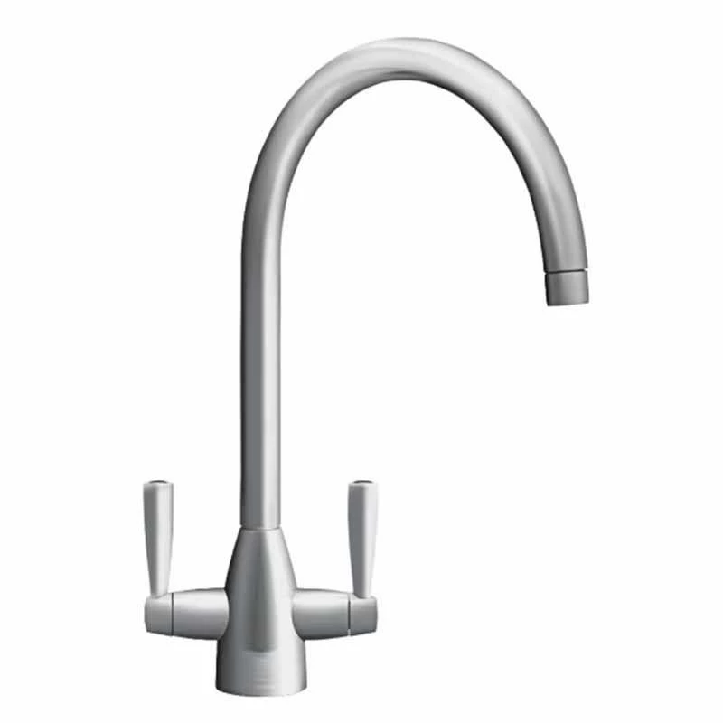 The Franke Eiger is a sleek shaped kitchen mixer tap and adds a real sense of style to any kitchen. It features a perlator which gives a champagne-like flow whilst also saving water. The modern and unique J spout design fits seamlessly into any kitchen with its attractive decor steel finish to complement the sturdy brass construction.