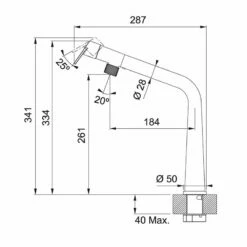 - Spout reach: 184mm