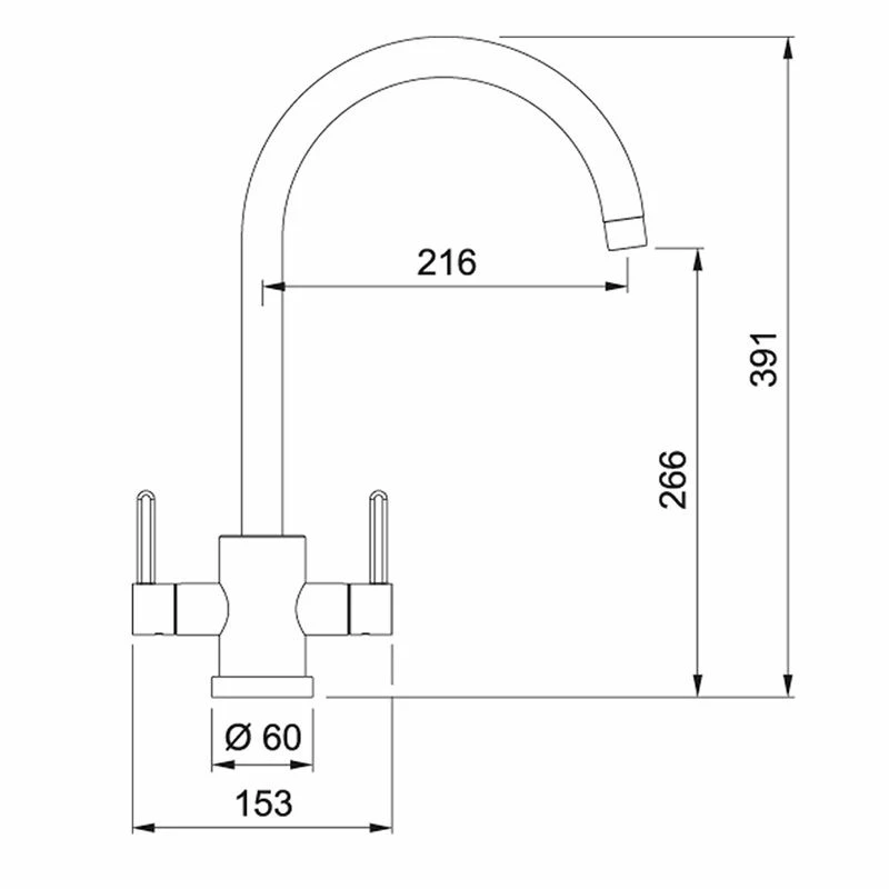 The Franke Krios J spout kitchen tap is manufactured from high quality and durable brass that will stand up to wear and tear. It features a swivel spout design complemented by an easily identifiable twin lever handles to operate hot and cold flow. The tap is also fitted with hard-wearing ceramic discs and suitable for high-pressure water systems. Built to last, the mixer tap is backed by 5 years guarantee from manufacturer for a peace of mind.