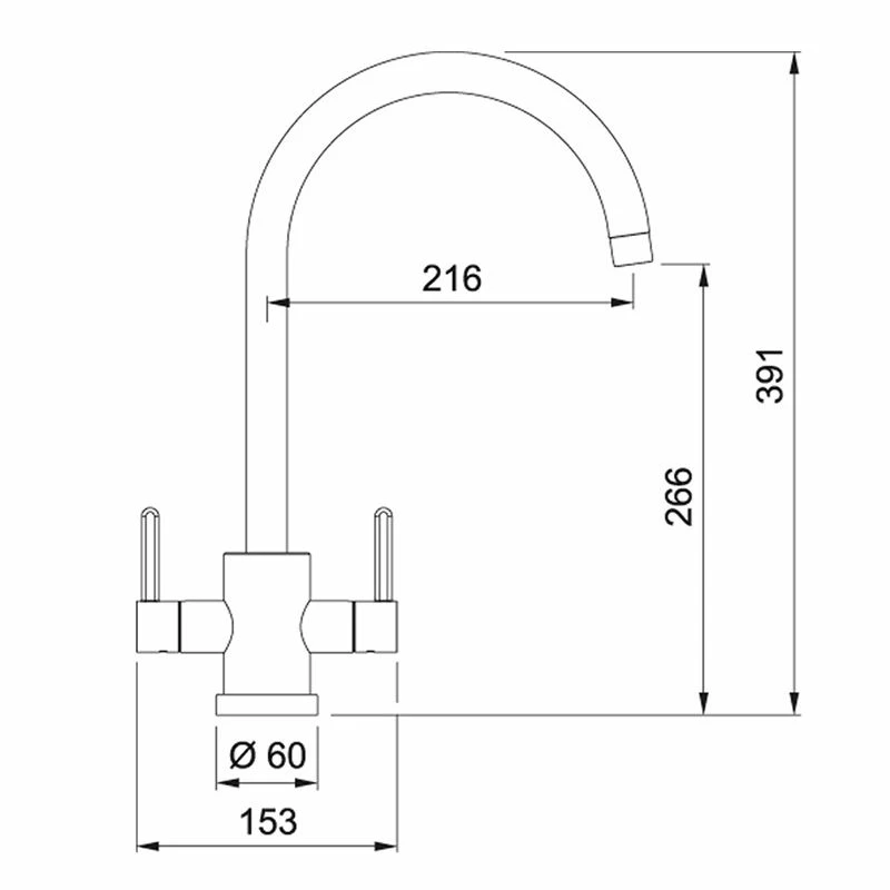 - Height to end of spout: 266mm