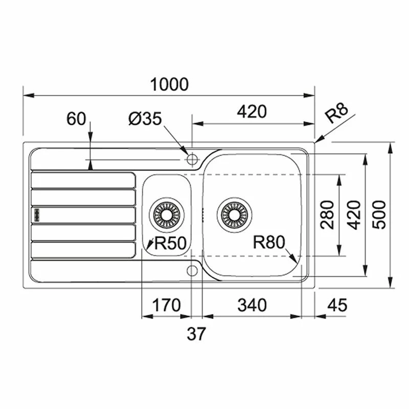Finish your kitchen with the Franke Spark SKX 651-100 1.5 bowl inset kitchen sink with reversible drainer. It facilitates for many kitchen designs with 600mm cabinet size, production quality and 50 years guarantee will allow you to have confidence in your sink. Complemented by its stylish linear design, it carries a fabulous finish which blends well with any kitchen setting.