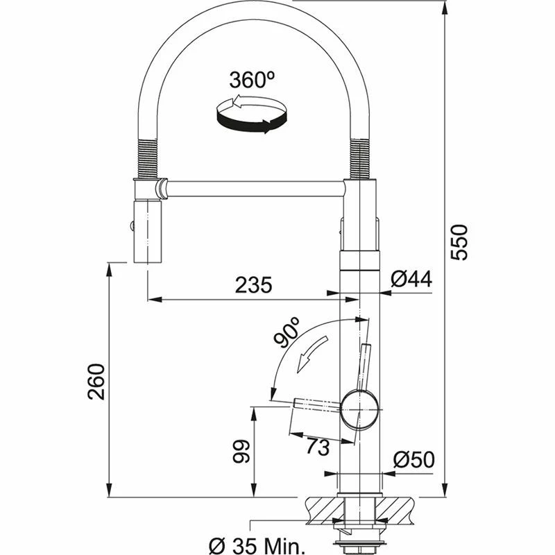 - Tap hole diameter: 35mm