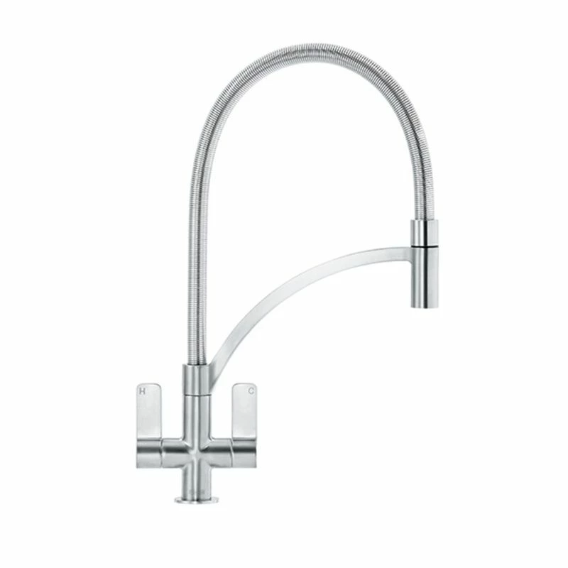 The Franke Zelus Kitchen Tap with Pull Out Nozzle adds a stylish design feature to fit your space offering the best of both worlds through design and sustainability, creating an appealing finish to accessorise your kitchen. The J spout design and detailed craftsmanship make Franke Zelus taps line ideal for those who savour simplicity combined with exquisite performance and a simple but impressive aesthetic.
