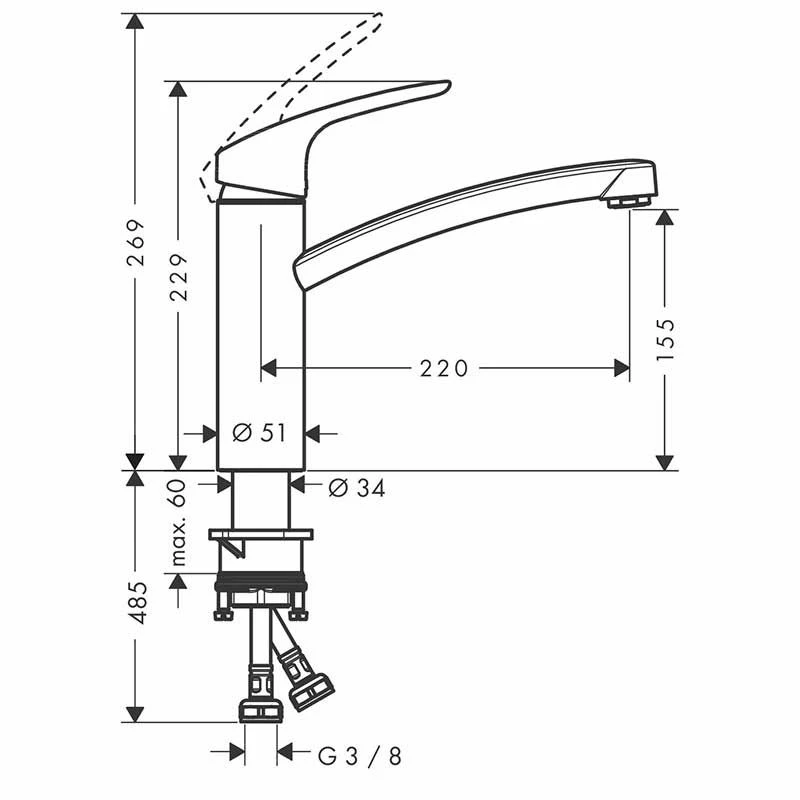 The single-lever design enables effortless management of water flow and temperature. With a simple movement of the lever, you can easily adjust the water to your desired temperature and flow rate, ensuring a convenient and customizable kitchen experience.