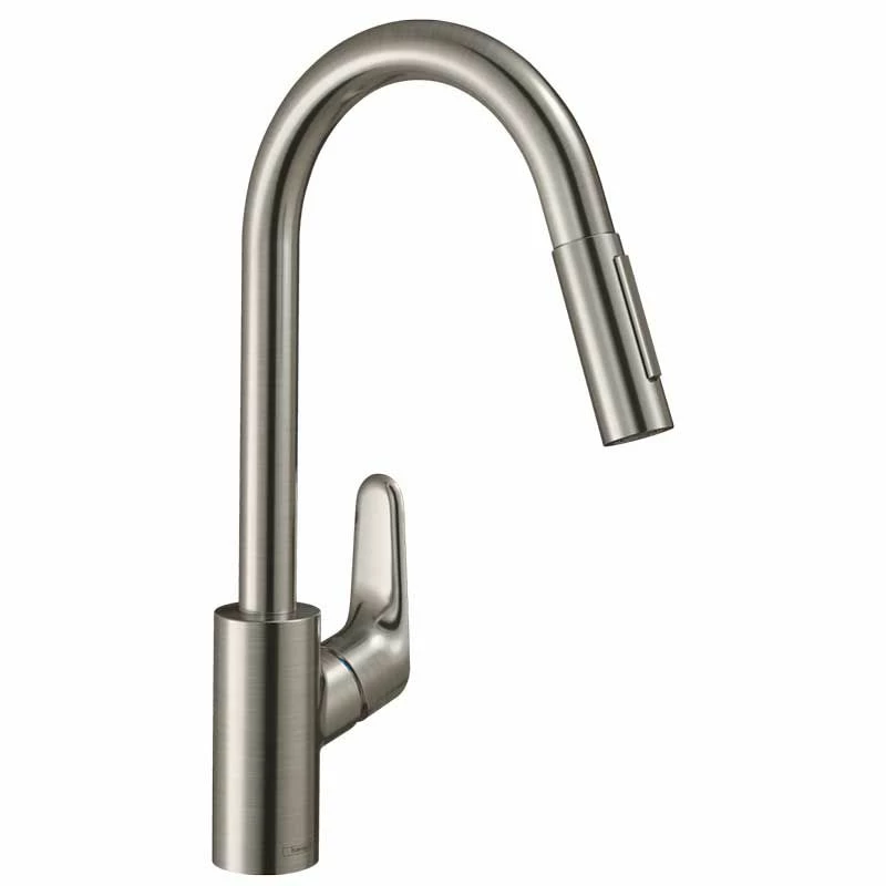 hansgrohe Focus M41 Single Lever Kitchen Mixer Tap 240 With Pull-Out Spray & Sbox 2 Spray Modes – Stainless Steel – 73880800