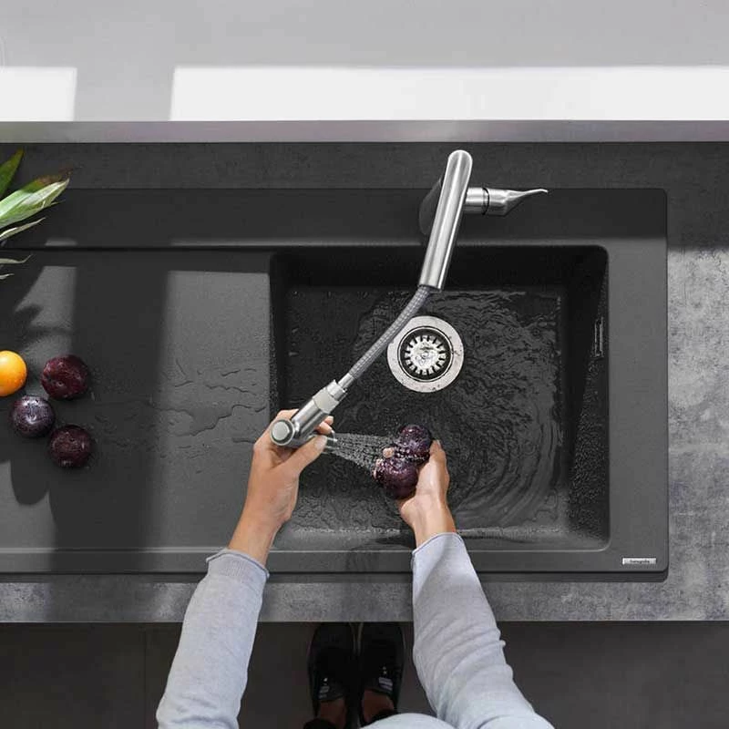 - Shower spray – Resource-saving shower spray at the sink. Whether fruit or vegetables, fish or meat, the soft spray helps to gently yet efficiently clean food and other items.